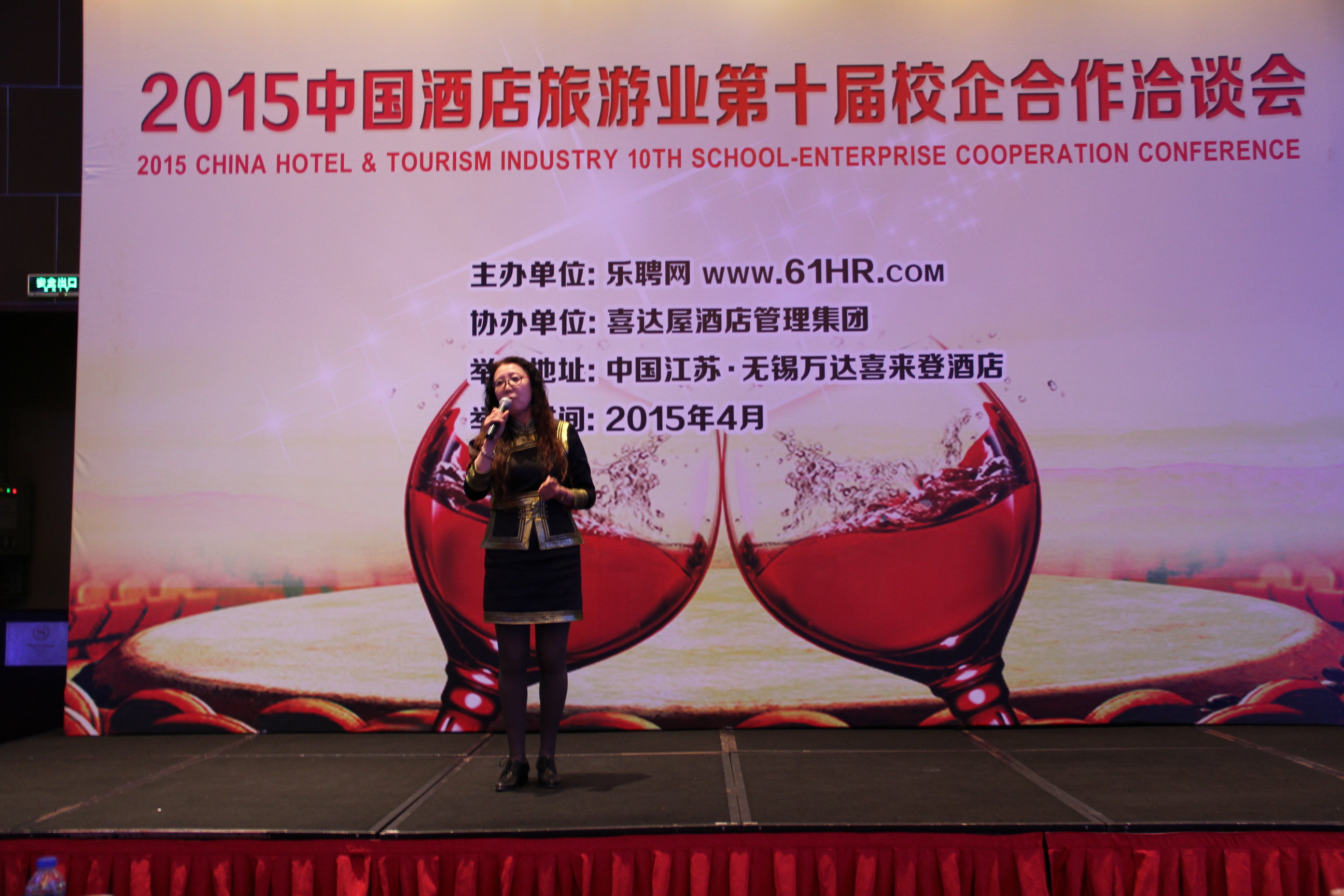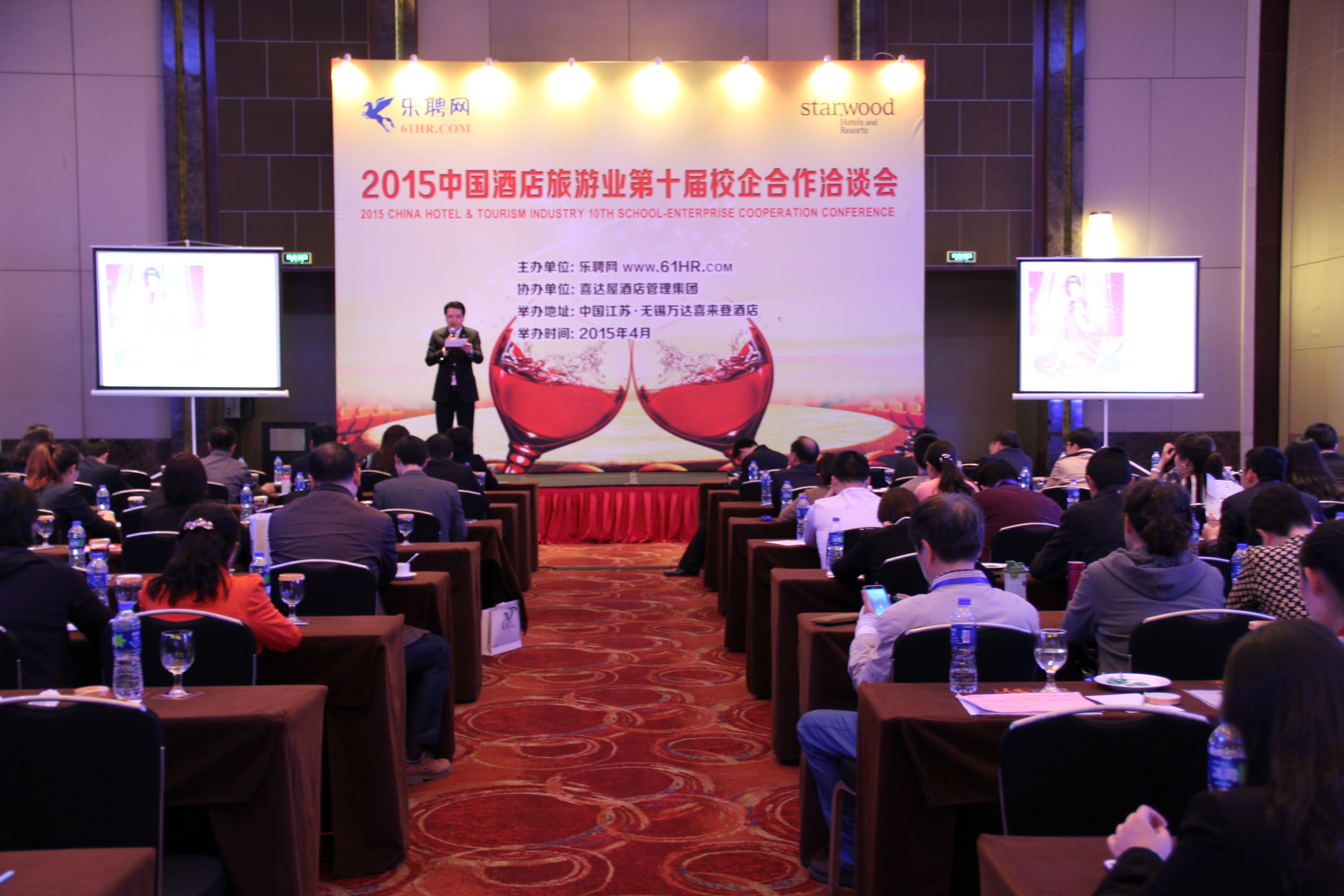 为搭建酒店旅游业企业与院校之间交流合作平台,满足长三角地区的酒店、餐饮、会展、邮轮、奢侈品、旅行社等旅游企业对旅游院校大中专毕业生、实习生的迫切需求,本着服务全国旅游院校实习、就业工作的精神,4月24日、25日,无锡万达喜来登酒店举办了“2015年中国酒店旅游业第十届校企合作洽谈会”。洽谈会吸引长三角地区逾百家知名酒店旅游企业高层和来自江苏、广东、上海、浙江、福建、天津、哈尔滨、青海等省市的五十所酒店旅游院校代表参加,我院旅游系副主任李光宇获邀参加此次洽谈会并作为代表发言。