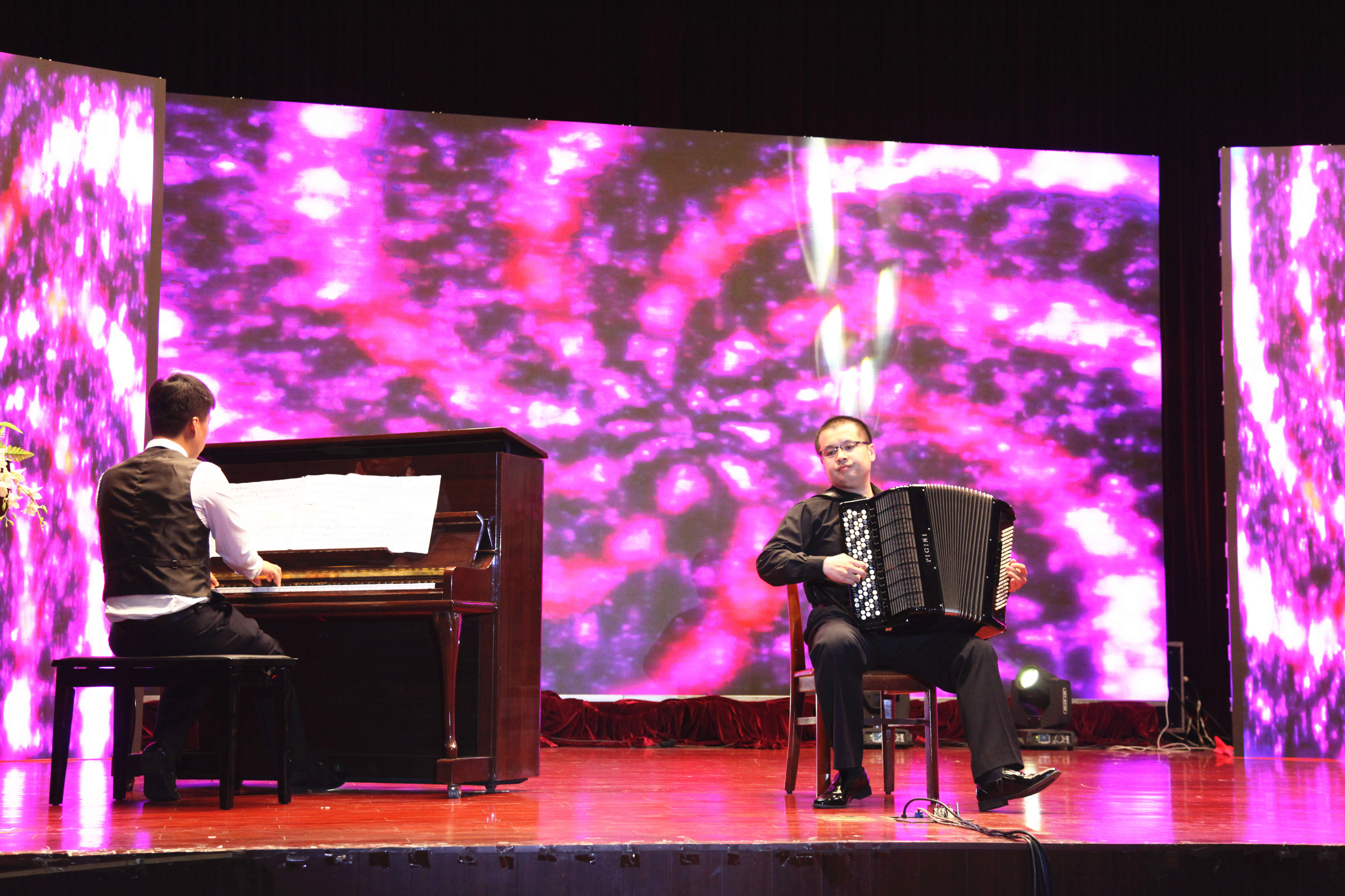 报告会现场还准备了丰富多彩、独具特色的文艺节目。“感恩父母给予我生命,感恩老师教会我成长;感恩帮我的人啊,使我感受善良……”荣获“我身边的好老师”称号的丁嘉伟老师和学生一曲深情对唱《感恩》,唱出了师生间的动人情谊。两位80后青年教师的手风琴演奏《匈牙利舞曲五号》,明快的节奏将热情奔放的匈牙利风情传递给观众,点燃了全场的热情。