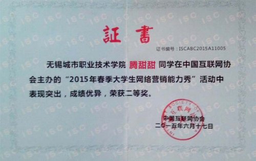 在6月16日结束的第13届“全国大学生网络营销能力秀”竞赛中,由我院贸易金融学院杜荣良老师指导的王城同学和腾甜甜同学分别获得一等奖和二等奖的好成绩,同时指导老师和学院分别获得了“优秀指导教师奖”和“优秀组织奖”。 全国大学生网络营销能力秀竞赛是中国互联网协会主办的全国性网络营销专业技能竞赛,比赛遵照实践促就业的指导原则,紧密结合互联网最新发展趋势,通过丰富多彩的竞赛式网络营销实践活动,在竞争的氛围下,培养大学生的网络营销的核心能力,为增强就业及创业能力奠定基础。竞赛项目涵盖了网页推广、友情链接、博客营销、微博营销、软文撰写和微信营销等网络营销领域的实战技能。本次比赛共吸引来自全国200所院校近万名电子商务和市场营销专业的学生。 本次技能大赛的参赛队伍创历史新高,并且比赛项目也进行了创新,为全国职业院校电商、营销类专业提供了一个相互交流与学习的平台。此次成绩的取得,不仅是师生刻苦努力的结果,更是我院深化内涵建设、提升教学质量的成果展示。 |