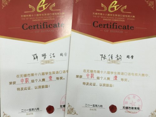 我院学生在无锡市学生英语口语电视大赛中荣获一等奖 | |