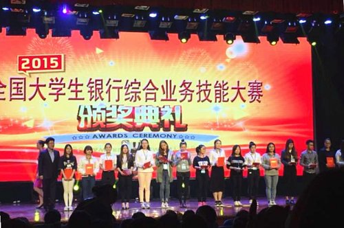 10月13日,由全国金融职业教育教学指导委员会主办的“2015年全国大学生银行综合业务技能大赛”在江苏财经职业技术学院落下帷幕。 本次竞赛是目前国内级别最高的大学生银行业务技能竞赛,共吸引了来自全国86所高职院校报名参赛。我院参赛选手在贸易金融学院鲁继业院长领队,刘凤娟、周晓莲老师指导下,参加银行综合业务竞赛赛项。面对全国众多强手,我院团队凭借过硬的专业知识、标准的操作技能以及稳定的发挥,获得银行综合业务团体二等奖,另外,潘潇潇同学分别获银行零售业务、对公业务单项一等奖,顾宁烨同学获银行零售业务单项二等奖,庄欣同学获得银行对公业务单项三等奖。 据悉,本次大赛包括银行综合业务竞赛(零售业务赛项、对公业务赛项)和手工技能竞赛(点钞技能赛项、传票算技能赛项、字符录入技能赛项)两个赛项内容。银行综合业务零售业务技能比赛中,选手需在90分钟内通过仿真业务竞赛平台单人单机独立完成包括通用业务、借记卡业务、储蓄业务、个人贷款业务、信用卡业务。银行综合业务对公业务技能比赛中,选手需在60分钟内完成对公贷款业务、公司存款业务、代理业务、结算业务、联行业务等功能模块。手工技能竞赛中,两名选手分别完成点钞、传票算、字符输入业务三个单项赛。 比赛现场 颁奖典礼 我院代表队 |
