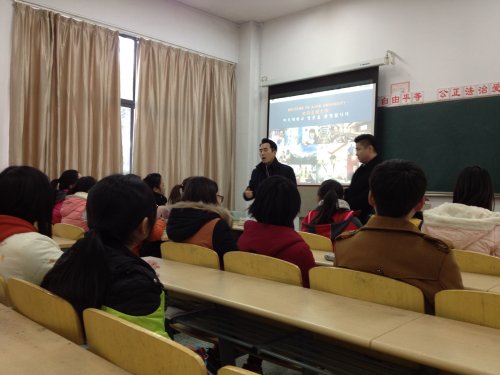 12月17日下午,韩国亚洲大学国际协力部长尹丁镛一行来访我院,副院长瞿立新以及相关二级学院负责同志热情接待尹丁镛部长一行。双方在前期磋商基础上,正式签署两校缔结友好学校协议,并签署国际合作与交流项目协议。 签约后,尹丁镛部长一行在学院外事办公室负责人陪同下同部分会计学院学生见面,就中韩文化、韩国高等教育及亚洲大学办学情况等内容与学生进行交流互动,介绍了我院与亚洲大学联合推出的高职学生“3+2”学历提升项目和中职学生“5+3”学历提升项目。之后,尹部长一行参观了传媒与艺术设计学院、旅游学院部分实训室,与参加实训的学生和教师进行交流。 韩国亚洲大学是韩国领先的一所综合型的私立大学,成立于1973年。学历获得我国教育部认可。亚洲大学由11个学院组成,经营学、医学等为其强势学科。该校在韩国230多所4年制大学中排名前15名。 我院与韩国亚洲大学缔结友好学校 与学生交流互动 参观实训室 撰稿:张洋 |