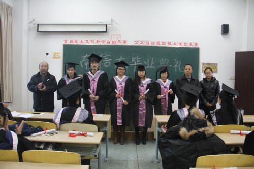 近期,贸易金融学院在举行南京信息工程大学、无锡城市职业技术学院2015届专接本“公共关系”专业毕业生毕业典礼暨学位授予仪式。贸易金融学院院长鲁继业、党总支书记赵宏宾、2015届公共关系专接本班主任沈迪出席仪式。 毕业典礼在庄严肃穆的国歌声中开始,院长鲁继业宣读学位授予名单。2015届公共关系专接本专业共有30名同学,截止目前,有29名同学获得学历学位。院长鲁继业为获得学士学位的学生逐一颁发学位证书并授“拨穗礼”,鲁院长代表贸易金融学院为完成学业的学子送上最诚挚的祝贺,希望毕业学生做好“一立足二追求三服务”,即一立足自身,二追求学习、追求发展,三服务家人、服务工作、服务社会。希望同学们走上社会后,不忘母校,为母校增光。 学生代表谢施、毛海东等表达了对母校的感激之情,难忘母校四年学习和生活,难忘师恩,祝福母校蒸蒸日上,桃李满天下。 毕业典礼现场 毕业生合影 |