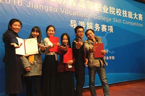 1月7日—9日,由江苏省教育厅主办、南京旅游职业学院承办的2016年江苏省高等职业院校技能大赛导游服务赛项在南京旅游职业学院举行。经自选导游讲解、抽选景点讲解、现场知识问答、才艺展示、导游综合知识测试五个项目的比拼,我院旅游学院涉外1501班陈聪获英文组二等奖,导游1501班宗玉青获中文组二等奖、涉外1401班王蓉蓉获中文组三等奖;崔建周和贾玎老师获指导教师奖。