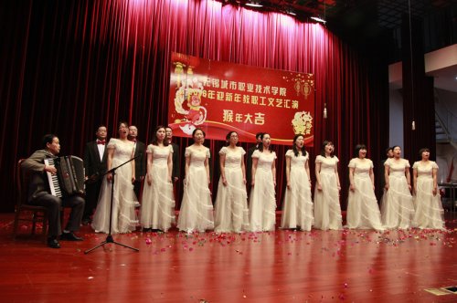 1月20日下午,魅力四射的“无锡城市职业技术学院迎新年教职工文艺汇演”在图文信息中心大报告厅隆重举行。院长应可福,党委副书记俞力元,副院长瞿立新、王远东、陈新,以及各二级学院、各部门教职工代表、学生代表欢聚一堂,共享文化盛宴,共贺猴年新春。 经过一个多月的紧张排练,来自全院14个分工会的教职工们为大家献上了一台精彩纷呈的表演,演出高潮迭起,掌声不断。 贸易金融学院以一曲悠扬的《在那桃花盛开的地方》正式拉开了汇演帷幕,后管处《歌唱祖国》、基础课部《走进新时代》雄浑高亢、斗志昂扬;旅游学院《相亲相爱》、传媒与艺术设计学院《相亲相爱一家人》清澈甜美、温馨动人;建筑与环境工程学院《精忠报国》、行政第二分工会《共筑中国梦》刚柔并济,气势恢宏;师范学院独唱表演《蓝色爱琴海》、《喜欢你》传统与现代交融,韵味十足;会计学院《南屏晚钟》将悠扬的歌声和婀娜多姿的舞蹈完美融合,精致细腻、悠扬委婉;体育部《明天会更好》、物联网工程学院《我们走在大路上》饱含深情,表达了对美好未来的无限憧憬;师范学院学前系女声小合唱《今天是你的生日》以女性的柔美唱出了中华儿女对祖国的无限眷念;最后,行政第一分工会一曲《欢乐中国年》将迎新年的喜乐气氛带给全场观众,为整场演出画上了完美的句点。 经过激烈角逐,最终,师范学院学前系《今天是你的生日》、行政第一分工会《欢乐中国年》获得一等奖。 演出结束后,陈新副院长发表了热情洋溢的致辞。他认为,本次演出精彩纷呈,节目旋律优美、欢乐喜庆,主题鼓舞人心、催人奋进,既展现了我院教职工积极向上、团结拼搏的良好精神风貌,也丰富了校园文化建设的品牌,对激发广大教职工坚定信念,以更加饱满的热情投身学院改革和发展具有重大的意义。他期望全院教职工能以更加饱满的精神和更加昂扬的斗志携手开启2016年的新征程,共同实现城院新跨越。 我院举办迎新年教职工文艺汇演 旅游学院:《相亲相爱》 师范学院女声独唱:《蓝色爱情海》 会计学院:《南屏晚钟》 行政第二分工会:《共筑中国梦》 师范学院女声小合唱《今天是你的生日》 行政第一分工会:《欢乐中国年》 陈新副院长致辞 |