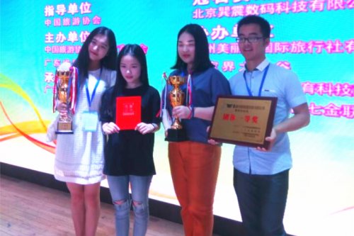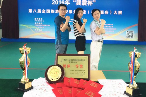 5月15日上午,由中国旅游协会指导,中国旅游协会旅游教育分会和广东省旅游局联合主办的“巽震杯”第八届全国旅游院校服务技能(导游服务)大赛在广东旅游职业技术学校落下帷幕。我院旅游学院师生准备充分,表现十分出色,在大赛中一举摘得12项大奖,囊括了个人一等奖、团体一等奖、最佳单项奖、最佳指导奖等所有奖项。 其中,会展1502班的孙楷雯同学获得英语组一等奖第二名、最佳讲解单项奖和最佳才艺单项奖;导游1501班的宗玉青同学获得中文组一等奖和最佳讲解单项奖;涉外1401班的王蓉蓉同学获得中文组二等奖、才艺单项居全国第一;领队1501班的陈聪同学获得英文组三等奖;曹长波、崔建周、贾玎、孟祥丰、张一和赵建六位教师获评最佳指导教师奖;四位选手以总分江苏第一、全国第八的成绩摘得团体一等奖。在此次大赛中,四位选手无论在获奖级别、获奖名次、获奖项目,还是获奖数量上均开创了我院参赛历史上的新记录。 第八届全国旅游院校服务技能(导游服务)大赛由中国旅游协会旅游教育分会和广东省旅游局联合主办,由广东省旅游职业技术学校承办。大赛共有来自全国30个省(市、自治区)的335所院校参赛队的956名选手参赛,其中本科、高职和中职院校分别占比43.58%、36.42%和20%。参加比赛活动的师生达到4000多人,观摩超过3万人次。比赛分为高等院校、中职学校两个组别,在综合知识理论考核、中英文景点讲解和才艺展示三个环节展开角逐。本次大赛首设团体奖和讲解、才艺单项奖,获奖比例为每个赛项前5%。 备赛三个月来,在院领导和同事的关心支持下,指导教师们废寝忘食、呕心沥血;四位选手刻苦勤奋、精益求精;师生协力,最终获此殊荣。此次比赛彰显了我院的办学特色和教育教学改革的成就,极大地提高了我院知名度。 获奖选手合影 指导老师合影 撰稿:崔建周 |
