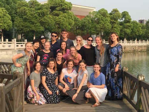 昨日,美国杨百翰大学师生代表团一行十八人,在无锡市教育局高等教育与职业教育处荣耀处长、无锡文化艺术学校季志良校长等人的陪同下,来我院进行交流访问。我院师范学院院长王蕾、副院长姚建平以及学院外事办公室参与接待。 学院为杨百翰大学师生访问团精心安排了丰富的交流内容。来宾们首先旁听了师范学院学前教育系学生的一节舞蹈课,了解了中国古典舞的一些基本动作。然后,来宾们来到南校区音乐厅,在音乐厅的舞台上为大家演唱了两首中英文歌曲。随后,来宾们饶有兴趣地参观了南北校区的校园风光,美丽的校园深深地打动了杨百翰大学的师生们,大家不停地举起相机手机拍照留念。 据悉,杨百翰大学成立于1875年,学校坐落于美国犹他州的普罗沃市。美国最权威的USNEWS排名给予杨百翰大学“2014年全美最佳综合大学第62名”的评价。杨百翰大学歌舞团由杨百翰大学音乐学院与该校舞蹈系合作组建。杨百翰大学歌舞团由多名歌唱家、舞蹈家和音乐家组成,其表演的音乐剧活力四射、热情奔放,因而赢得了人们的赞誉。 此次交流活动,促进了两校师生之间的交流沟通,也是中美两国文化交流的一部分,希望藉此能够推动我院和美国杨百翰大学有更进一步的合作交流。 师生合影 代表团一行参观校园并合影留念 |