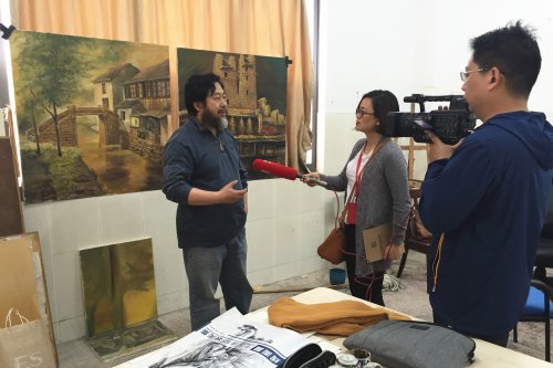 近期,江苏卫视综合频道、无锡都市资讯频道等省市级媒体先后来院,采访师范学院芦宾老师,集中报道其对古建筑保护工作所作出的贡献。 芦宾老师擅长中国古民居题材作品的油画和水彩画创作,近几年,芦老师创作了很多油画和水彩画,其中古民居题材的油画及水彩画就有近百幅。 “每一个古民居都会告诉你一个古老的故事,每一个古民居都承载了中国千百年来的文化。”芦老师说。而这上千年不曾被任何风雨击倒的房屋,如今却在人类的城市化建设中逐渐被摧毁,这让芦老师非常痛心,芦老师想通过他的画笔,把这些即将消失的古民居都画下来,来表现出古老的房子自身所蕴含的艺术之美、文化之美。芦老师希望通过他的作品,能唤醒人们,让更多人去理解古建筑的这种美,并自发地去保护古建筑、传承古建筑。 据悉,芦宾老师积极投身古建筑的创作和保护工作在社会上产生了一定的影响,已有多个单位和组织积极联系芦老师开展古建筑绘画展。去年,无锡灵山慈善基金会文化艺术发展基金会还专程安排团队采访了芦宾老师,并为芦老师制作了一个以“没落的文化”为主题的专访视频。 采访现场 采访现场 芦宾老师画展 撰稿:杨汉东 |