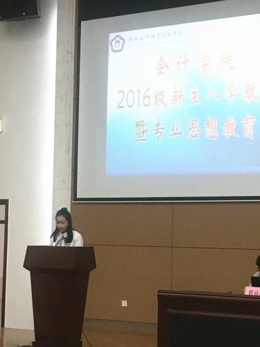 为做好2016级新生入学教育工作,提高新生安全防范意识,明确学习目标,使广大新生能更好地适应大学生活。会计学院围绕安全教育、专业教育和生活指引三个内容,于9月12日下午在南校区大报告厅开展了会计学院2016级新生入学主题教育大会。会计学院副院长林云刚,党总支副书记许爱瑾,院长助理陶红及会计系主任杨新华,财经系主任胡瑛琳、副主任吴霙霏,16级辅导员和班主任老师参加了本次会议,会议由会计系副主任丁钧主持。 会议首先由林云刚副院长发言,他代表全院师生对新生的到来表示欢迎,并且从会计学院的发展历史、办学理念,以及近年来在教育教学方面的改革举措、卓越成绩和学院发展愿景等方面全面介绍了会计学院,并鼓励同学们踏实学习、勇于创新,通过自身的努力获取未来的成功。党总支副书记许爱瑾就如何过好大学生活为新生提供了一些建议,并且对新同学提出了殷切期望。 随后,会计学院学生会主席刘雪茹同学作为老生代表发言,分享了她在校一年间的成长经历,鼓励学弟学妹们珍惜大学时光,努力学习,积极参加学校活动,全面提升自我,让自己的大学生活更加精彩。新生杨同学也代表全体新生表示将会尽早确立目标,积极适应大学学习生活。 最后,两位系主任分别就三年制、五年制的特点分别对各系学生进行专业认知教育,详细介绍了课程设置、专业前沿动态、学籍管理相关内容以及继续深造发展的途径等方面的内容。 新生入学教育在引导新生顺利适应大学生活、迅速融入校园氛围、科学合理规划大学生涯中起着重要作用。近期,会计学院还将继续开展形式多样、内容丰富的系列教育活动,为新生适应新的学习生活环境提供有效帮助,为2016级新生的全面成长保驾护航。 领导讲话 学生代表发言 会议现场 撰稿:丁钧 |