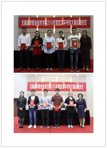 10月18日下午,我院2015年规范汉字书写大赛总结大会暨2016年规范汉字书写大赛启动仪式在小报告厅举行。院党委副书记俞力元,基础课部、团委负责人以及各学院党总支书记出席活动并为获奖单位与个人颁奖。 规范汉字书写大赛由院团委与语言文字工作委员会精心策划,共同举办。大赛主题为“经典无锡”,书写内容为历代名人咏无锡的经典诗句,作品类别分软笔楷书、软笔隶书、软笔行书、硬笔楷书、硬笔隶书、硬笔行书等6类书体,比赛分为初赛、决赛两个阶段。初赛期间各二级学院广泛发动,积极宣传,认真组织,严格甄选,共有36幅作品脱颖而出,入围决赛。经过大赛评委会认真评选,最终评出硬笔书法一等奖4名,二等奖9名,三等奖17名;软笔书法一等奖2名,二等奖2名,三等奖2名;优秀指导老师19名,优秀组织奖5个。 规范汉字书写大赛旨在贯彻落实国家语言文字法律法规,大力推广和规范使用国家通用语言文字,提升大学生语言文字规范意识和应用能力,引导大学生热爱祖国文字和书法艺术,继承和弘扬中华优秀传统文化。从2009年开始,规范汉字书写大赛就被列为我院推广普通话宣传周的重点活动,迄今已连续举办七届。 大会现场 院党委副书记俞力元讲话 为获奖代表颁奖 撰稿:祝玥 |