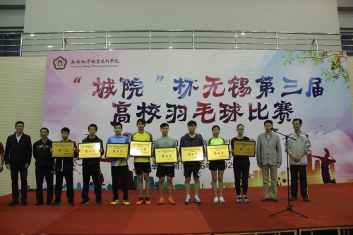来自无锡各高校的羽毛球健儿经过一天的激烈角逐,顺利产生各项名次。闭幕式于当日下午4:50举行。最终:太湖学院、江南大学、无锡城市职业技术学院分别获得学生组一至三名;无锡职业技术学院、无锡城市职业技术学院、江阴职业技术学院获得教工组一至三名。无锡城市职业技术学院获得“优秀组织奖”。