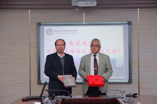11月18日上午,日本东京福祉大学喜多村悦史副校长一行四人来访我院,洽谈中外合作办学项目。院党委书记高建宁、院长应可福热情接待了喜多村副校长一行,并与来宾举行会谈。会谈由瞿立新副院长主持,基础课部主任赵芝英及项目相关负责教师参加了会谈。 主客双方详细磋商了我院同东京福祉大学开展专接本赴日留学项目友好合作的具体事宜,一致达成两校友好合作意向。应可福院长代表我院向代表团一行赠送了精美礼品。 会谈结束后,喜多村副校长在我院南校区报告厅作了题为《日本福祉文化与高等教育》的精彩讲座。酒店管理专业、计算机应用(NIIT)专业和学前教育专业师生200余人聆听了本次讲座,师生们对日本文化和教育有了更为深刻的了解。 在院领导的陪同下,喜多村副校长还出席了我院首届技能节开幕式并致辞,还与院领导及企业代表一同启动了开幕仪式。 本次代表团来访洽谈圆满顺利,为我院与东京福祉大学进一步开展友好合作奠定了良好的基础。 会谈现场 主客双方进行友好交流 院党委书记高建宁热情接待了来宾一行 院长应可福向来宾赠送礼品 喜多村副校长作题为《日本福祉文化与高等教育》的精彩讲座。 撰稿:王维科 |
