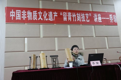 以刀代笔 妙手天成——传媒与艺术设计学院邀请乔瑜女士作《无锡留青竹刻》讲座 | |