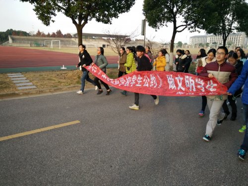 为积极培育和践行社会主义核心价值观,增强中职生德育的针对性和实效性,引导学生自觉养成良好的思想品质和行为习惯。近日,师范学院在五年一贯制前三年的学生中全面开展宣传、学习、签署、践行《中等职业学校学生公约》活动。 12月5日中午,在南校区食堂门口,师范学院举行了预科段学生践行《公约》签名活动。同学们认真阅读《公约》的内容,并在横幅上庄严地签上了自己的姓名,承诺做践行公约的模范。当日下午的班会活动课上,各班通过演讲、朗诵等多种形式学习了《公约》的内容,深刻把握《公约》的主旨内涵。 12月6日,同学们在晨跑过程中,拉着红色的横幅,在跑道上锻炼,挥洒汗水,成为了校园一道靓丽的风景。精神抖擞的跑操、色彩明亮的横幅彰显着同学们践行《公约》的决心和信心。 公约是对职业学校学生思想德语的要求,涵盖了德、智、体、美这些基本要素。今后,师范学院将把宣传、学习《公约》作为学生主题教育内容,以此作为预科段德育工作和校园文化建设的常规活动,让学生知晓了解《公约》,认同《公约》,自觉践行《公约》,从而内化为学生的一种理念、一种自觉行为。 同学们认真阅读《公约》内容 同学们手持横幅进行晨跑 主题班会 撰稿:常静雯 |
