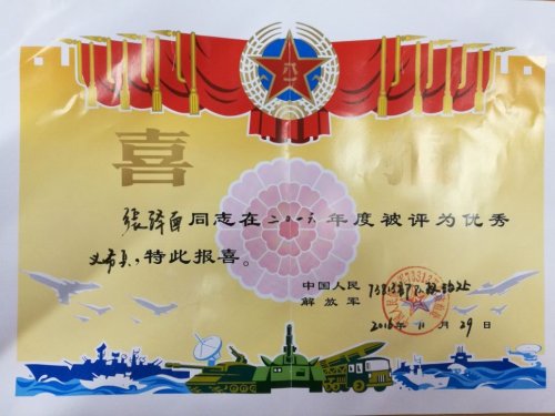 贸易金融学院张泽南同学获2016年度优秀义务兵荣誉 | |