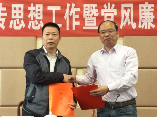 4月21日上午9:30,我院在图文信息中心小报告厅召开宣传思想工作暨党风廉政建设会议,回顾总结2016年我院宣传思想与党风廉政建设工作,安排部署2017年工作。学院领导班子、副科级以上干部以及2016年度“我身边的好党员”参加了会议。会议由院党委副书记俞力元同志主持。 会上,院长应可福同志宣读了《关于表彰2016年度“我身边的好党员”的决定》,领导班子为获得2016年度“我身边的好党员”称号的同志颁奖。院党委书记高建宁与领导班子成员分别签订党风廉政建设责任书,各二级学院、各部门党政负责人签订党风廉政建设责任书,副科级以上干部签订干部承诺书。 高书记对学院2017年宣传思想工作和党风廉政建设提出了新的要求。他强调,2017年是学院“创新发展之年”,要坚定不移地加强意识形态工作和反腐倡廉建设,确保各项工作落到实处取得实效。宣传思想工作方面,一要坚持理论武装,进一步加强思想阵地建设;二要坚持文化育人,不断凝练校园文化品牌;三要坚持机制创新,深入推进校内外新闻宣传工作。党风廉政建设方面,一要严明纪律规矩,维护风清气正的政治生态;二要持续加压发力,推动“两个责任”落地生根;三要加强廉洁教育,筑牢领导干部理想信念根基;四要完善机制体制,发挥好监督执纪作用。 会议现场 院党委书记高建宁作重要讲话 院长应可福宣读表彰决定 院党委副书记俞力元主持会议 院党委书记高建宁与领导班子成员分别签订党风廉政建设责任书 2016年度“我身边的好党员”上台领奖 2016年度“我身边的好党员”上台领奖 |
