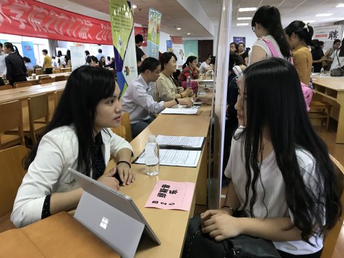 为正确引导毕业生就业,拓宽就业渠道,也为满足用人单位的招聘需求,5月19日上午,师范学院校园“双选会”在原城中校区培训大楼会议厅火热举行。 学院相关部门负责人,师范学院领导、全体毕业年级辅导员和部分班主任等来到“双选会”现场,与用人单位接洽沟通,指导推荐学生就业。太湖实验幼儿园、东亭中心幼儿园、和畅实验幼儿园等23家幼儿园,青少年活动中心、天才宝贝、巧虎早教中心等27家教育机构,以及包括联想集团、贝塔斯曼在内27家企业,共计77家用人单位入场进行了现场招聘。为时3小时的招聘会现场气氛热烈,用人单位与学生进行了充分的交流,有部分学生已与用人单位达成初步签约意向。据悉,有部分单位在去年11、12月就已经与我院联系,许多招聘单位对我院毕业生的综合素质非常满意,希望与我院建立长期合作关系。 本次“双选会”受到了全院师生、用人单位的一致好评,也让在校学生通过与单位的实际沟通,了解目前单位的用人需求和本专业的就业形势,对自己的未来有了一个清晰的职业规划。下一步,我院招就处将继续优化就业指导服务,多方倾听用人单位与毕业生需求,努力构建更大、更多“精准化、全过程”的就业工作平台。 双选会现场 双选会现场 撰稿:顾碧 |