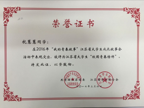 我院学子喜获江苏省大学生“校园青春榜样”荣誉称号 | |