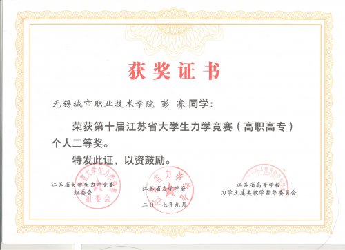 近日,第十届全省大学生力学竞赛暨首届全国高职高专大学生基础力学邀请赛评奖结果公布,我院建筑与环境工程学院彭赛同学在安晶、张莉、刘国华老师指导下荣获第十届江苏省大学生力学竞赛(高职高专)个人二等奖及首届全国高职高专大学生基础力学邀请赛个人二等奖。 此次竞赛吸引了来自江苏、浙江、四川、湖北、黑龙江、湖南、广东等省份39所学校的1146名学生参加,试题结合力学原理在实际中的应用,题型新颖,难度较高,考察学生专业的理论功底以及创新思维等。 学院通过组织学生参加竞赛有效地促进了相关课程的改革与建设,提升了学生的学习兴趣,培养他们分析、解决实际问题的能力。 学院近年来以提高学生职业素养为目标,创新多种教育教学实践方式,通过系统的基础知识培训和面向工程应用的拓展培训,为学生提供了多次集成基础知识和拔高技术应用技能的机会,学院也将继续开拓,为深化内涵建设,服务学生成长成才贡献力量。 |