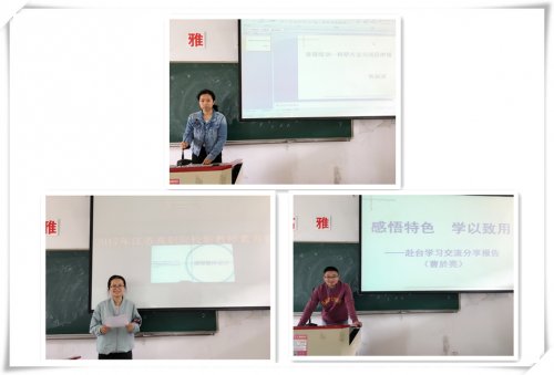 近日,传媒与艺术设计学院开展了“弘毅教师发展论坛分论坛”汇报交流会。黄丽洁、曹於亮和王芸三位参训教师先后就其培训内容与各位老师进行了学习交流及心得分享。会议由传媒与艺术设计学院黄丽洁老师主持,传媒与艺术设计学院全体教职工参加了本次会议。 参加省级培训的黄丽洁老师,通过“科研方法与项目申报”这门课程的培训和学习,认识到对于高校教师来说,科研是工作内容的一部分,要不断培养科研工作的热情,从事科研工作要注重科学的研究方法,辅以持之以恒的精神,才能有所收获有所突破。 赴台研修的曹於亮老师在台湾致理科技大学培训期间感受最多的就是“创意”和“创新”,作为思想政治辅导员,此次培训对其今后的思想政治工作和学生管理工作有了新的启发:要进一步加强和学生的交流,不断创新手段和载体,构建全过程、全方位的育人格局,把思政工作落细落小落实到学生心中。 王芸老师向大家分享了参加新教师培训的心得体会,通过培训,充分认识到教师这个职业的重要性和艰巨性,认识到成熟的教学体系要经过教学方法创新、教学目标优化等诸多方面的努力付出才能达成。作为新教师,要在今后的教学过程中不断总结反思、不断探索,形成自己独特的教学风格,构建科学合理的教学模式。 三位老师分享交流之后,与会老师围绕艺术设计人才培养目标、课程改革、校企合作等方面进行了热烈的讨论。此次学习心得汇报交流会有利于优化教学队伍的梯队建设,有利于完善教师量化考评指标体系,有利于激励教师不断提升专业素养与教学水平,为我院教育事业的发展做出更大的贡献。 参培教师作交流发言 撰稿:王耕耘 |