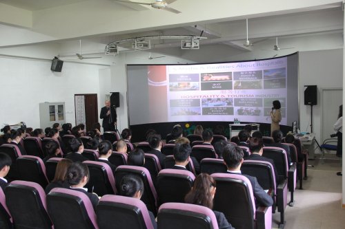 4月19日上午,美国万豪基金会万礼豪程项目总监董佳女士、万豪基金会万礼豪程项目首席学术顾问、圣地亚哥州立大学教授GeneLame、万礼豪程项目传讯总监兼教学顾问Linda Roundtree教授与万礼豪程项目资深学术顾问ScottRichardson教授等一行六人到访我院。副院长瞿立新、国际合作学院、基础课部、旅游学院负责人和师生代表一百余人共同接待了来访者。 来访的第一项议程是在旅游学院视景仿真实训室进行的一堂演示课,由万礼豪程项目资深学术顾问ScottRichardson教授授课。副院长瞿立新在授课前进行了简短的致辞,对来访嘉宾表示热忱欢迎,随后与在场师生代表共同参与了Scott教授的演示课。此次演示课以互动的形式与学生共同探讨旅游、酒店行业的发展趋势、未来前景,让学生在互动中锻炼英语口语的同时,加深了对行业的认识与了解。师生互动频繁,课堂气氛热烈,学生们课后都表示受益匪浅。 授课结束后,来宾们参观了旅游学院实训室。在308会议室,双方召开了教学座谈与合作洽谈会,副院长瞿立新对美国万豪家族基金会所展现的企业责任与使命,表达了充分肯定与高度赞同。他详细介绍了我院的办学历史、专业特色与师资队伍建设等方面的情况,期待双方今后能加强联系,开展长效合作。随后,来宾们进行了精彩的分享,他们对我院的校园环境、实训室建设与学生的课堂表现等都给予了高度评价。最后,董佳总监对万里豪程项目进行了全面介绍,她感谢校方的热情接待,对我院旅游专业教学取得的成绩和师生们表现出了专业素养表示充分的肯定;对双方今后可以开展的合作项目充满了信心,这为双方进一步开展合作奠定了基础。 通过此次访问,万豪基金会万礼豪程项目组对我院的办学特色、人才培养模式、学生学习情况有了进一步了解;同时,借此次交流访问,我院对万豪基金会万礼豪程项目有了深入了解,这为双方今后进一步洽谈合作项目打下了基础,也为学院进一步深化教学改革,推进校企合作,开展产教融合提供了国际化视野与平台。 万礼豪程项目是由J. Willard and Alice S. Marriott万豪家族基金会资助的慈善项目,该基金会为家族私人性质,成立于1965年,其宗旨是回馈社会。“万礼豪程”项目落户中国,旨在帮助和推进具有中国特色、以师为本、促进学术界与业界精英共同积极参与的酒店教育事业。未来,“万礼豪程”期望致力达成“激励老师、优化教学、改变人生”的美好愿景,助推中国职业教育的发展。(撰稿:郭媛) 瞿立新副院长致欢迎辞 Scott教授的演示课现场 双方洽谈会现场 万礼豪程项目总监董佳发言 来宾们分享教学经验 双方合影 |