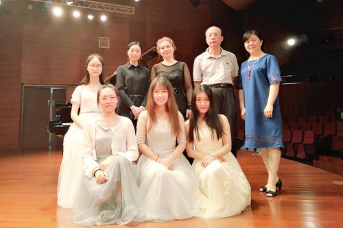 用跳动的音符传递对美与艺术的追求,用灵动的手指表达对爱与未来的憧憬。5月30日,奥莉卡师生钢琴音乐会在南校区音乐厅华美上演。来自师范学院小学教育系音乐专业的四名学生与奥莉卡老师一起,为师生们献上了一场精彩的“钢琴大餐”。 音乐会在过梦诞同学演奏的莫扎特《降B大调奏鸣曲K.333快板》的钢琴声中拉开序幕,接着奥莉卡老师为大家带来了古典主义作曲家莫扎特和贝多芬的三首作品,音符在指尖流淌,节奏随键盘的跳动而流传,无论是充满爆发力和戏剧性的贝多芬,还是精致优美、灵动浪漫的莫扎特,奥莉卡老师都能用娴熟的技艺和细腻的情感来演绎,演奏赢得了观众们的阵阵掌声;当演奏柴可夫斯基、斯克里亚宾和拉赫玛尼诺夫三位俄罗斯作曲家的钢琴作品时,奥莉卡老师时而热情奔放的展现,时而含蓄内敛的诠释,给在场的每一位观众带来了一场浪漫的东欧音乐之旅。随后,周芸、付宇寰和管玉立三位同学分别演奏了拉赫玛尼诺夫、车尔尼和肖邦的钢琴作品。音乐会在奥莉卡老师演奏的肖邦《e小调圆舞曲》的琴声中完美结束。 奥莉卡老师自2015年到我校任教至今,每学期都坚持举办师生音乐会,这既是一次钢琴教学成果的展示,又为同学们积累了丰富的舞台经验,本次音乐会拉近了高雅艺术与同学们的距离,激发了同学们学习钢琴的热情,激励同学们在音乐道路上不断成长与进步。 奥莉卡老师演奏中 师生合影 |