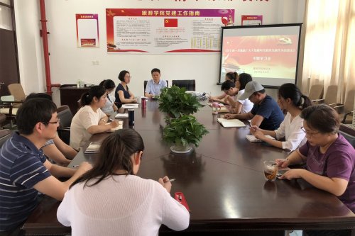 旅游学院党总支副书记陈霞主持本次会议,她首先向全体与会党员认真传达了中央《关于进一步激励广大干部新时代新担当新作为的意见》文件精神,要求教工党支部与学生党支部在认真学习的基础上,撰写学习心得。