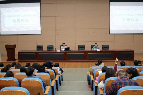师范学院副院长王蕾在主持讲座时强调,全体教师要以实际行动切实推动师德师风建设,进一步增强教书育人、为人师表的自觉性,营造健康发展的育人环境。