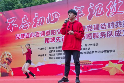 秋风送爽,果实飘香。10月15日,在第29个重阳节来临之际,师范学院党总支、南塘社区党总支、凯龙高科技股份有限公司党总支共同组成“知音先锋”党员志愿服务队,为南塘社区的老人们精心准备了一台重阳联欢会,不仅丰富了老年人的文化生活,弘扬了中华民族尊老敬老的传统美德,也初步探索了高校、社区、企业三方党务共建的新形式。 活动当天,师范学院党总支、南塘社区党总支、凯龙高科技股份有限公司党总支首先举行了“先锋知音”党员志愿者服务队的结对仪式,三方领导分别致辞。师范学院党总支副书记潘群指出,进一步探索高校、社区和企业三方共建的新形式,可以充分实现三方优势互补、资源共建,南塘社区和凯龙高科技股份有限公司可以依托和借助高校的智力和专业优势,常态化开展志愿服务活动;师范学院党总支也可以把社区和企业作为志愿服务和社会实践的平台,为学生未来融入社会提供历练的机会。 随后,三方志愿者及惠山区如意公益协会为在场的老人们表演了广场舞、印度舞、歌曲联唱等各类节目,老人们乐在其中。我院精心挑选了部分学生、教师志愿者以山东快书、歌伴舞、吉他乐队弹唱等多种形式为老人们献才献艺,特别是一首《绒花》让许多在场的老人热泪盈眶,仿佛逝去的芳华重新盛开。光华烨烨,流芳不凋,老人们提前共同度过了一个难忘的重阳节。 本次活动是师范学院党总支和社区、企业进行三方共建的一次新探索,让大家认识到“文化活动”是高校、社区和企业进行党务共建的有效载体,“志愿服务”是实现三方有效合作的有力支撑。未来,师范学院将进一步探索党务共建的新形式,充分发挥高校的智力和专业优势,积极促进高校、社区和企业的精神文明建设与和谐社会的构建。(撰稿:孙阳) 师范学子为老人们表演节目 师范学院党员志愿服务队在活动现场 |