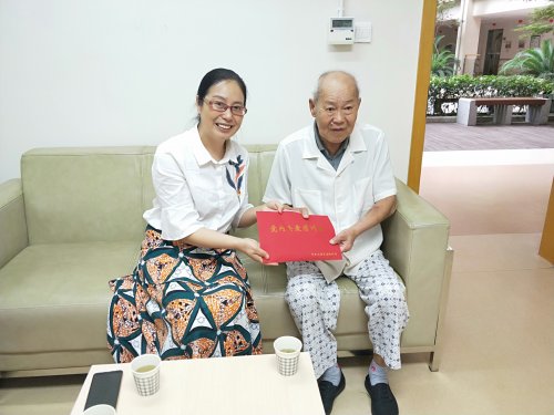 在福利中心,梅亚萍详细了解了吴如标的身体健康情况和治疗情况,向吴如标同志及其家属转达了学校党委的关心和祝福,并向吴如标同志送上市委组织部的慰问信和慰问金。