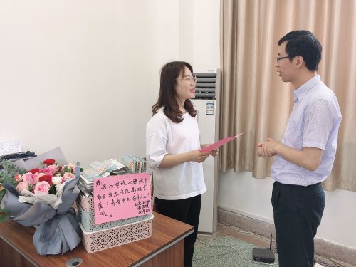 不忘初心城院情,青春追梦一路行。近日,影视学院学生党员、2019届毕业生潘佳祺同学来到教2405办公室,向学院老师表达了离校的不舍与对在校学习的珍忆,并向学院分团委学生会赠送纪念礼。学院党总支副书记贾迅、学工办主任王菲参与了交流。 潘佳祺同学说道,这三年来,她从一名普通团员成长为一名学生党员,经历了很多,也收获了很多。特别是在影视学院建立初期,她与老师同学一起彻夜努力,配合老师搭建新的学生会、组织同学参与团学活动等,都让她深深感受到学院师生的凝聚力、“弘毅”校训的影响力以及学院党组织的示范引领力。 对于毕业赠礼,她说道,作为学院第一个发展的学生党员、第一个学生会主席,对学院有着道不尽的感情,所以,一点小小的礼物希望能学院带来大大的祝福,也祝愿学院发展更加欣欣向荣。 贾迅代表学院向潘佳祺同学表达了感谢。他表示,“不忘初心、牢记使命”是一名党员想事、干事、成事的依托,希望她今后不管在哪里,都要发挥好党员的模范带头作用,让自己、让他人,都能一起收获成长的喜悦,见证日益繁荣的美好。无锡城院、影视学院,永远是咱们同学的温馨休憩之地、奋斗蓄能之地、创新激励之地。 据了解,一直以来,影视学院党总支都非常注重对师生入党积极分子的培养,对师生党员的思想教育与实践引导。这一次学生党员回校“思源”,也是学院围绕“立德树人”根本任务,发挥基层党组织育人育才作用的一个重要鼓励。 贾迅书记寄语潘佳祺 王菲老师向潘佳祺同学颁发感谢证书 |
