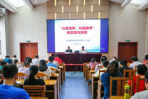 7月3日下午,江苏建筑职业技术学院校长沈士德教授应邀来我校作题为“‘分类培养、分层教学’的实践与探索”的专题讲座,讲座由校长张志祥主持。副校长吴雪纯,各二级学院(部)主要负责人、分管教学负责人、专业负责人(带头人)、教学秘书,教务处相关人员到场聆听讲座。 讲座现场 沈士德教授从多生源不同基础的需求、学生个性化学习的需求、用人单位多元化人才的需求、新时期教学改革的需求等维度,以“为每一位学生提供最适合的教育,让每一位学生得到充分发展”为逻辑,详细阐述了“分类培养、分层教学”实施动因与背景,从分类培养的理论基础与实践出发,结合江苏建筑职业技术学院开展“分类培养、分层教学”的探索与实践,着重讲解了专业群构建、人才培养方案制订、多方向分类培养、建立选学课程、整合实训条件、促进学习模式变革等六个方面。 江苏建筑职业技术学院校长沈士德教授作题为“‘分类培养、分层教学’的实践与探索”的专题讲座 校长张志祥主持讲座 校长张志祥在主持时指出,沈教授讲座内容是国家级教学成果奖的凝练,讲座既有理论高度,又有实践深度,将拓展我校创新发展的思路,促进教学改革实践路径的优化。 |