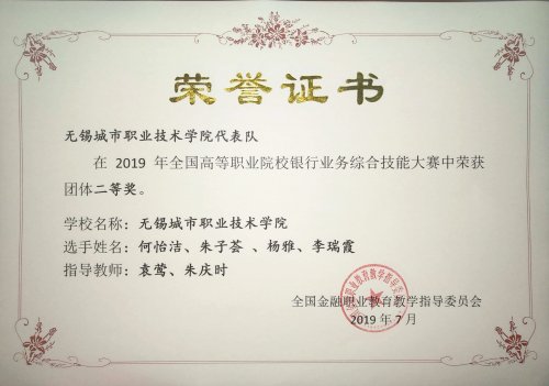 我校学子喜获全国高等职业院校银行业务综合技能大赛二等奖 | |