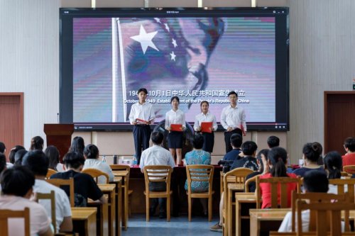 同学们也踊跃为推普启动活动点亮光彩:“朗读者”社团带来了激情洋溢的《青春中国》诗歌朗诵,歌新中国70华诞,诵莘莘学子爱国情怀;“推普农村行”暑期“三下乡”社会实践小分队带来了推普调研汇报,同学们的足迹走过江苏兴化、山西大同、福建、安徽砀山、浙江杭州以及云南玉溪等地,对推广全国普通话的现状、难度、意义和有效措施进行了客观理性的分析,引人深思。