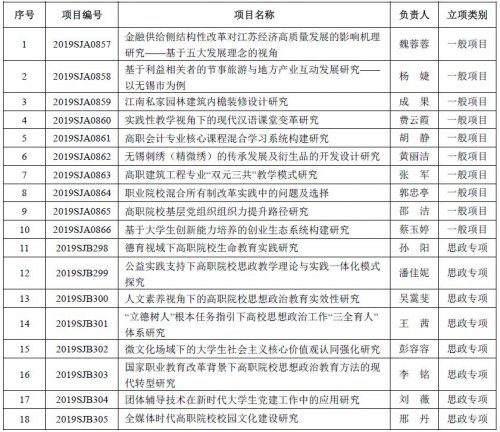 近日,江苏省教育厅公布了《2019年度高校哲学社会科学研究一般项目立项结果》和《2019年度高校哲学社会科学研究专题项目立项结果》。我校魏蓉蓉老师主持《金融供给侧结构性改革对江苏经济高质量发展的影响机理研究——基于五大发展理念的视角》等10个项目获高校哲学社会科学研究一般项目立项,孙阳老师主持的《德育视域下高职院校生命教育实践研究》等8个项目获高校哲学社会科学研究思政专项立项。 近年来,我校不断优化学校科研环境,营造了良好的学术氛围。同时,学校还投入专项资金大力扶持科学研究工作,鼓励并帮助广大青年教师申报各类科研项目,不仅大幅提高了科研项目的立项率,也为青年教师申报更高层次的科研项目奠定坚实基础。(撰稿:沈怡玥) |