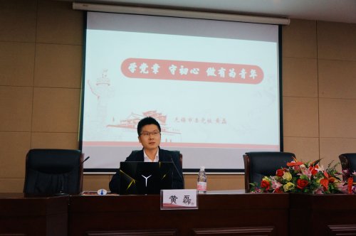 黄磊从“党的基本理论”、“党章的发展历程”、“新时代的新党章”及“认真贯彻新党章”四个方面,用朴实的语言,精彩生动的案例与详实的数据,深入浅出的进行了理论梳理,充分展现出我党在新时代特色社会主义建设中发挥的引领作用。他指出,党章是党的总章程,是党的根本大法,是全面从严治党的总依据和总遵循,是全党必须遵循的根本行为规范。他细致的讲解更好地帮助团学青年们深学、细照、笃行,时刻准备着,做好党的后备力量。