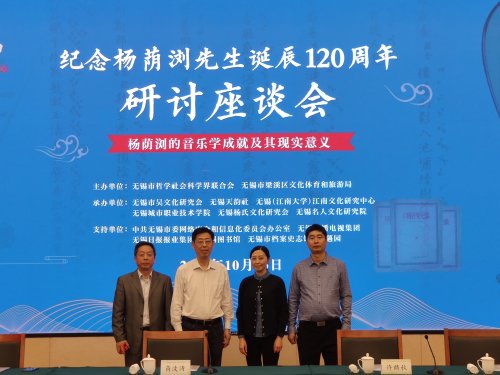 10月25日下午,纪念杨荫浏先生诞辰120周年研讨座谈会在市民中心召开,座谈会由无锡市哲学社会科学界联合会、无锡市梁溪区主办,我校是主要承办单位之一,副校长、校社科联负责人吴雪纯,师范学院院长王蕾、副教授韩惠君,建筑与环境工程学院副院长柏双友应邀出席。吴雪纯代表学校作大会发言。 副校长吴雪纯作大会发言 我校代表参加研讨座谈会 杨荫浏(1899-1984),字亮卿,生于无锡留芳声巷,中国音乐学家,中国民族音乐学的奠基者。他自幼酷爱音乐,一生好学,1916年进入江苏省立第三师范学校(现今我校师范学院)学习,1921年以优良的成绩毕业。 吴雪纯在大会发言中表示,杨荫浏的音乐学成就具有非常重要的现实意义,新时代开展杨荫浏诞辰纪念活动,将极大增强我们的“文化自信”,大力弘扬无锡对于中国民族音乐方面的贡献,擦亮无锡“民乐之乡”文化标识,丰富无锡的人文资源,增强无锡的文化软实力,推进城市文化品牌的打造。 杨荫浏先生是中国音乐学界的泰斗级人物,在中国音乐史研究、中国古代音乐挖掘研究、中国民间音乐抢救保存、中国乐器乐律研究以及中国语言音乐学的开创等多方面作出了划时代的贡献。作为我校杰出校友,杨荫浏先生也为学校音乐教育提供了宝贵财富。我校师生将在校友精神的感召下,不断提升艺术教育水平,为推动无锡文化高质量发展作出积极贡献。 我校师生代表还参加了专家报告会、音乐雅集等系列纪念活动。 |