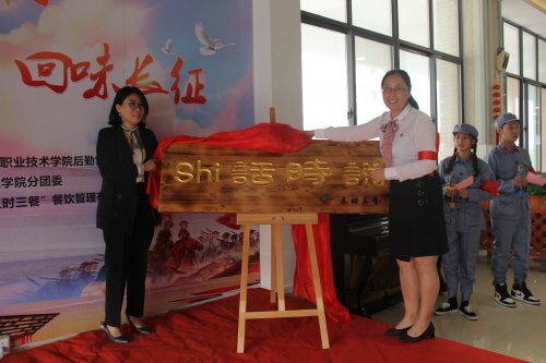 为深入践行“不忘初心牢记使命”主题教育,进一步加强作风建设,弘扬长征精神,开启新征程、激发新动力,10月23日下午,由我校后勤管理处、团委主办,贸易金融学院协办,苏州三时三餐餐饮管理有限公司承办的“忆苦思甜、回味长征”活动在南校区食堂二楼举行。副校长梅亚萍、无锡市军队离休退休干部溪南休养所副所长陈鸣辉、团委书记陈文婷、后勤处主任杨建明、苏州三时三餐餐饮管理有限公司董事长葛日顺以及百余名教师、学生代表参加了活动。 副校长梅亚萍致辞 梅亚萍首先作精彩致辞,号召全体师生要牢固树立勤俭节约的意识,珍惜现在来之不易的生活,通过活动充分感受革命的艰苦,不忘初心,牢记使命,砥砺前行。随后,梅亚萍与葛日顺为“shi话时说”品牌活动揭牌,并共同切下蛋糕,为活动拉开帷幕。现场,贸金合唱团带来的《映山红》传递浓浓的爱国情怀。屡获军功章的90岁军休老干部董振泰为大家讲述了自己的人生轨迹、军旅生涯和晚年的幸福生活。他号召师生向红军老前辈学习长征精神,也表示自己在未来的生活中会不忘初心、牢记使命,始终保持共产党员、革命军人的政治本色永不变,时刻关注青年人的成长成才。 揭牌仪式 学生代表,商英1901班张月同学,满怀着自己的情感,抒发了对先烈的缅怀,对学校的感谢,并号召同学们珍惜粮食,从现在开始。 活动中,师生们纷纷在签名墙上留下签名、拍照纪念,认真聆听“红军”志愿者们带来的长征小故事,阅读展板上的长征精神,爬雪山、过草地、飞夺泸定桥、激战腊子口、转战乌蒙山、胜利大会师……一幅幅图、一个个字,涤荡着每位学生的心。国贸1801班张晨阳说,带上红军的红袖套,我们就是长征精神的传扬人,新时代的我们,要时刻铭记长征精神,艰苦向上,为实现伟大的中国梦而砥砺奋进。(撰稿:沈迪) 与军休老干部董振泰合影 |