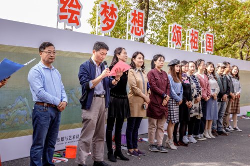 为庆祝新中国七十华诞,推进“不忘初心,牢记使命”主题教育工作,传媒与艺术设计学院举行了“忆初心、记使命、绘梦想、颂祖国”《千里江山图》创意手绘活动。党委副书记俞力元,党委委员、组织部部长王建出席了,学院全体党员及部分学生参加了此次活动。 党委副书记俞力元致辞 俞力元在致辞中对传媒与艺术设计学院在“不忘初心,牢记使命”主题教育工作中思政教育与专业教育有机融合的方式表示充分肯定,对近年来学院所取得的优异成绩表示高度赞许,希望学院进一步强化“理实交融”的教育理念,推动艺术设计教育向更高层次跨越,成为无锡城市职业技术学院特色鲜明的文化品牌。 北宋著名画家王希孟的《千里江山图》以“咫尺有千里之趣”的表现手法描绘了祖国的锦绣河山,画作的意境契合了中华人民共和国成立70周年以来经济、社会的全面腾飞。俞力元,王建为《千里江山图》开笔,为祖国的大美江山添彩。学院教师党员们集体用画笔勾勒出全体师生的设计梦想,讴歌新中国所取得的辉煌成就。学生们在各自负责的区域点画晕染,表达对祖国七十华诞的美好祝愿。 教师绘画 学生绘画 传媒与艺术设计学院紧紧围绕立德树人根本任务,致力于专业技能的特色化构建和传统文化的可持续化学习,将传统文化元素的研习和传承与现代创意设计教育实践有机融合,师生们从中华传统文化中汲取文化自信,把爱国精神转化为实际行动,将“个人梦”融入“中国梦”,共同为实现中华民族伟大复兴努力奋斗。 |