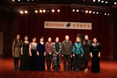 12月19日,由我校师范学院举办的“教师钢琴音乐会”在南校区音乐厅举行。副校长王远东、梅亚萍受邀参加。本次音乐会特邀江南大学的张蕾蕾老师与我校师范学院杜伟、万桂芬、张潇蕾、顾冰倩和外教奥莉卡老师同台演出。 本次音乐会的演奏形式以四手连弹为主,兼有六手连弹。音乐会上,老师们现场演奏了十首经典钢琴音乐作品,包括四手联弹作品亨利·伯塞尔的《回旋曲和咏叹调》、王羽编曲的《快乐的女战士》、巴赫的《辛弗尼亚》、勃拉姆斯的《匈牙利舞曲第六号》、拉赫玛尼诺夫诺夫的《练声曲》、聂耳的《金蛇狂舞》、哈恰图良的《圆舞曲》、乔普林·拉格泰姆的《演艺人》和约翰·施特劳斯的《拉德斯基进行曲》以及六手连弹作品莫扎特的《序曲》。教师们的演奏博得了大家的喝彩与掌声。 音乐会上多首钢琴音乐作品、多种艺术表现形式,充分展现了我校师范学院音乐教研室钢琴老师们的专业技能及综合素养,给学生们提供了一次很好的学习机会,同时让大家感受到了不同国家、不同时期、不同风格的钢琴音乐作品,共享了一场视听盛宴。 |