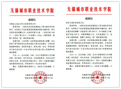 众志成城战疫情,爱心企业在行动。近日,两家爱心企业向我校捐赠了疫情防控的紧缺物资,为学校的疫情防控工作助力。副校长、学校疫情防控工作领导小组副组长梅亚萍代表学校接受捐赠物资。 无锡金土地生态农业发展有限公司(梅亚萍名师工作室实践基地-雨田别业)捐赠一次性防护服20套、一次性手套1000只、一次性口罩200只、84消毒水25公斤;南京方通科技公司捐赠一次性口罩2000只、84消毒液10桶、医用手套1000只、消毒喷雾器10台、红外体温枪5支、洗手液4桶。爱心企业的捐赠对我校疫情防控工作是及时有力的支持。 捐赠现场 梅亚萍代表学校向此次捐赠的两家爱心企业的善行义举表示衷心的感谢,向关心、支持我校疫情防控工作的各界朋友表达崇高的敬意。她表示,疫情无情,人间有爱;防控攻坚,八方支援。自我校疫情防控战打响以来,从教职工到企业都在积极行动,加班加点奋战一线、踊跃参与捐献物资,为抗击疫情贡献了力量、汇聚了暖流。我校将切实管好用好所捐物资,严格物资使用,让物资真正用在刀刃上,发挥最大的效益。 致爱心企业感谢信 |
