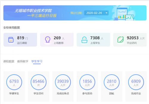 新冠肺炎疫情发生以来,根据教育部、省教育厅、市教育局关于新冠肺炎疫情期间“停课不停教、停课不停学”的指示精神,学校对2020年春季学期的教学工作进行了重新调整和安排。按照部署,2月24日,学校实现了首日全面在线教学,顺利开启2020年春季学期的线上教学阶段,万千师生“云端”连线,共同确保防疫、教学两不误。 组织保障,坚强有力 学校党委、行政高度重视新冠肺炎疫情的全面防控,高度重视新冠肺炎疫情导致的新学期延期开学期间的在线教学工作,成立了在线教学工作领导小组,组长由党委书记应可福,党委副书记、校长张志祥担任;副校长吴雪纯、党委副书记俞力元、副校长梅亚萍任副组长;在线教学工作领导小组下设了办公室、在线教学工作组(多个)、在线学生工作组、在线教学督导组、在线教学技术支持组等工作机构,认真贯彻落实上级教育主管部门关于延期开学期间在线教学的总体要求,全方位保障学校在线教学工作达到预期实效。 提前部署,全面有效 学校积极响应上级教育主管部门的号召,对在线教学工作进行提前部署与顶层设计,相继出台了《关于印发应对新型冠状病毒感染的肺炎疫情2020年春季学期延期开学期间在线教学方案及相关工作安排的通知》(锡城职院字〔2020〕21号)、《关于印发应对新冠肺炎疫情2020年春季学期延期开学期间在线教学实施方案的通知》(锡城职院字〔2020〕22号)等文件;召开了应对新冠肺炎疫情2020年春季学期延期开学期间在线教学工作部署会;各二级学院(部)等教学实施部门根据学校在线教学的总体实施方案,制订了具体实施方案,做到了“一专业一方案(计划)”,教学部和公共课实施部门做到了“一课程一方案(计划)”。 准备充分,开学有序 全校上下认真协同,在积极对接各大在线教学资源平台的同时,组织教师利用学校第三方课程资源平台(超星泛雅平台)开展线上课程资源建设,构建“线上课堂”,切实提升教师在线教学能力,保证在线教学质量。 各二级学院(部)结合自身实际,利用网络为同学们提供优质课程。通过教学平台上录制课程介绍、难点知识点录播,利用网络空间搭建在线辅导与答疑通道,强化学习效果。线上课程的开启,带给学生们全新感受。学生们纷纷表示,自主学习提升了自己的学习积极性,老师们的精心准备和答疑让自己收获颇丰。 贸易金融学院金融管理系教师周晓莲说道:“网络授课,要求我迅速掌握快速搭建混合式在线课程的方法,了解不同在线互动平台和工具的操作,选定最佳课程资源并进行授课。身为任课教师,深感时间紧、任务重。在疫情面前打好‘教学攻坚战’,做到‘网教不停学’,既是挑战,也是提升自身信息化素养的机遇。” 会计学院会计1702(五年制高职)于睿同学说道:“在远程网络学习这个平台上,我获得了更多的教育教学信息,使自己的视野变得更加开阔,还可以把自己在学习中的心得和疑问和老师交流探讨,是一次难得的学习机会。” 2月24日,仅超星泛雅平台上全校在线教学资源数就达96059个,题库量达301906个,泛雅平台首日访问量达92053人/次,上线教师269人,上线学生7308人(不包括教师使用的智慧职教云、凤凰职教云、智慧树、爱课程、中国大学MOOC、新道课程、蓝墨云班课等在线教学资源平台的后台数据)。在线教学覆盖所有专业。 强化督查,保证质量 学校对在线教学的进展及效果、学生参与在线教学等情况进行全面监测,及时督促指导,协调解决问题,努力提高在线教学质量;要求各二级学院(部)、相关部门构建在线教学建立监督管理机制,确保在线教学有效开展。同时,根据省教育厅要求,建立在线教学实行数据“每日更新”与教学进展“每周一报”制度。 学校召开应对新冠肺炎疫情2020年春季学期延期开学期间在线教学工作部署会 超星泛雅平台数据显示,我校新学期在线教学开局良好 教师们网上备课、在线教学 同学们以饱满的精神状态投入学习 |