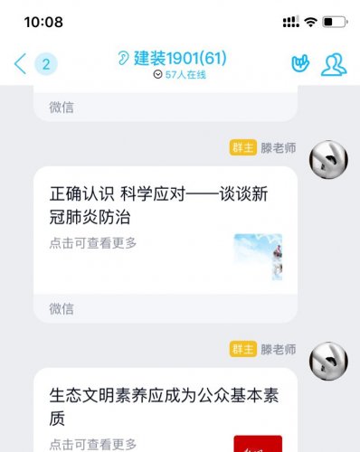 建环学院开展大学生思想政治教育,通过转发推送疫情防控过程中以习近平同志为核心的党中央对全国全面部署教育引导学生更加拥护党的领导、维护党的领导核心;通过转发推送疫情防控过程中的中国速度、中国力量、中国之治向学生们深刻讲解疫情防控中中国特色社会主义制度的巨大优势彰显;通过转发推送一批又一批的最美“逆行者”向学生们深刻讲解疫情防控中践行使命担当与责任坚守;通过转发推送疫情防控过程中需要大家严格遵守和积极配合执行疫情防控的规定和措施教育引导青年学生要尊法守法、提升文明素质。