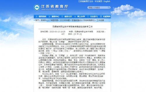 【江苏教育】无锡城市职业技术学院有序推进在线教学工作 | |