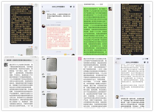 此次“云学习”严格按照以往线下党校学习的要求,对培训课时、培训内容、学习任务等做了精心的安排。在理论学习方面,主要开设包括党章、党史、习近平新时代中国特色社会主义思想、疫情期间习近平总书记的重要讲话等课程内容,学习素材主要取自“学习强国”平台,既有视频观看,也有文字材料阅读。每一位学员在学习结束后要求撰写心得体会,加深对党的理论的认识,坚定对共产主义的信念,同时养成通过“学习强国”等平台学习理论知识、了解时事政治的好习惯。