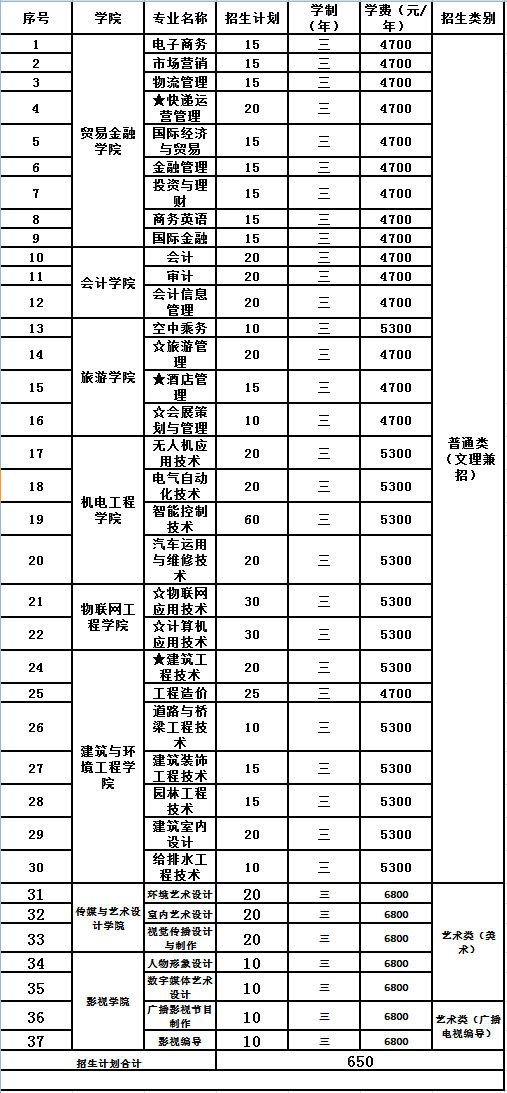 ☆为省级重点专业、省级品牌专业、省级特色专业和省级骨干专业