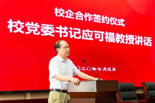 应可福在讲话中介绍了学校的办学历史和基本情况,向前来参加签约和揭牌的合作方代表表示衷心的感谢,希望签约的校企双方在项目、资金、技术、人才等方面实现深度融合,并祝愿校企合作项目落地落实,早日结出丰硕的成果。
