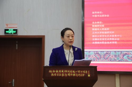 10月25日,由敦煌研究院、敦煌市人民政府、兰州大学敦煌研究所、南京大学文化艺术教育中心、无锡市文学艺术界联合会和我校共同主办的纪念敦煌藏经洞发现120周年·敦煌书法艺术学术研讨会在我校图文信息中心举行。来自全国各地的百余位专家学者汇聚一堂,共同发掘敦煌艺术瑰宝,探讨书法历史渊源,弘扬中国书法艺术。 开幕式现场 开幕仪式 中国书法家协会副主席、江苏省书法家协会主席孙晓云,中国书法家协会副主席翟万益,国际书法家协会首席主席刘正成,中国书法杂志社社长、主编朱培尔,无锡市人大常委会副主任吴峰枫,无锡市政协副主席金元兴,敦煌市委常委、宣传部部长马慧君,无锡市教育工委书记、无锡市教育局局长唐加俊,我校党委书记应可福,党委副书记、校长张志祥,副校长吴雪纯以及专家学者书法家楚默、张德芳、赵际芳、于明诠、黄正明、常汉平、王晓光、袁灿兴、魏明扬、顾琴、姚志薇、孙璘、王小宇、吴勇、张平生、俞建良、唐超良、郁枫、李春泉、蔡树农、张波、孙大权等百余人出席大会,无锡市文联主席卢敏主持会议开幕式。 作为此次研讨会的主办方代表,应可福代表学校致欢迎词,他介绍了我校的办学历史和成就,充分肯定了举办本研讨会的必要性和重要意义,对传承和弘扬书法艺术寄予了殷切期望。马慧君在致词中表示,希望敦煌、无锡两地今后以敦煌书法艺术研究为纽带,在各领域开展全方位的合作,促进双方共同发展。吴峰枫在致词中高度肯定我校在敦煌书法艺术研究上作出的探索与努力,希望通过本次研讨会,扎实推动敦煌书法艺术在保护中传承、在传承中创新、在创新中发展。孙晓云发表讲话,她希望各位专家能够广开思路,畅所欲言,为江苏开展敦煌书法艺术研究积极建言献策,同时也希望“一带一路”沿线各书法艺术团体和研究机构能够坚定文化自信,担当文化使命,继续深化交流合作,为推动中国书法艺术的繁荣,建设社会主义文化强国作出应有的贡献。开幕式上,与会领导为敦煌书法学研究论文获奖者代表颁发了荣誉证书,我校袁灿兴博士作为获奖论文代表发言。 我校党委书记应可福教授致辞 敦煌市委常委、宣传部部长马慧君致辞 无锡市人大常委会副主任吴峰枫致辞 中国书法家协会副主席孙晓云发表讲话 无锡市文联主席卢敏主持会议 我校党委副书记、校长张志祥教授,无锡职教园管委会党工委副书记尤瑜峰为论文获奖者代表颁发荣誉证书 山东省书协副主席、山东艺术学院于明诠教授,江苏省书协副主席、南京艺术大学文化艺术教育中心主任黄正明教授为论文获奖者代表颁发荣誉证书 获奖论文代表袁灿兴博士发言 开幕式后,原甘肃简牍博物馆馆长张德芳,中国书协学术委员、上海书画出版社《书法研究》杂志副编审王晓光分别作题为《汉简中的书法世界》、《近年西北新出土简牍》的专题报告。下午,与会专家围绕简牍、石刻、写经上的书法研究论文进行学术研讨,大家各抒己见,气氛热烈。藏经洞发现120年来,书法界对其五六万件写经书法只有一些零碎、分散的研究,既无专业的著作,亦少有深度的论文。2017年,无锡城市职业技术学院、无锡市文联积极响应国家“一带一路”倡议,组织有关专家对敦煌纸上、石上、简牍上的书法作认真深入的研究,撰写了五卷本的《敦煌书法史》丛书。2019年初,研讨会学术论文征集评选活动正式启动,得到了书法理论界的热烈响应和大力支持,共收到百余篇优秀论文作品。2019年6月,在我校举行了论文评审会,遴选出20余篇优秀论文结集成册出版,具有较高学术价值。 原甘肃简牍博物馆馆长张德芳作题为《汉简中的书法世界》的专题报告 中国书协学术委员、上海书画出版社《书法研究》杂志副编审王晓光作题为《近年西北新出土简牍》的专题报告 研讨会现场 中国书协副主席翟万益交流发言 中国著名美术史论学者楚默交流发言 研讨会期间,“敦煌写经邀请展”在我校图文信息中心十楼举办,共展出与会代表和来自全国各地书法家的书法作品120余幅,这些作品集中反映了艺术家们在敦煌写经书法方面的较高造诣和水平,是当代书法界写经书法的一次较大规模展示,吸引大量师生驻足观看。中国书法家协会副主席孙晓云,国际书法家协会首席主席刘正成,江苏省书协副主席、南京大学文化艺术教育中心主任黄正明教授等知名书画艺术家泼墨挥豪,现场创作艺术作品。 我校党委副书记、校长张志祥教授陪同嘉宾观展 中国书法家协会副主席孙晓云现场创作 国际书法家协会首席主席刘正成现场创作 江苏省书协副主席、南京大学文化艺术教育中心主任黄正明教授现场创作 一直以来,学校高度重视书法艺术的传承与教育,传承百年文脉、搭建传习平台、引进大师驻校、融通育人过程,将书法艺术的传习融入到学校人才培养方案和校园文化建设整体布局中,建有中国书画艺术馆、敦煌艺术馆;邀请一批名家大师来校作书法艺术讲座;开展“无主题变奏书法展”、吴文化传习书画大赛等活动,在师生中掀起热潮。敦煌书法艺术学术研讨会的成功举办,既是对敦煌书法艺术研究成果的充分肯定和完整展示,也是弘扬中华书法经典文化,把敦煌书法推向世界,把敦煌书法研究推向深入的重要载体,对我校更好地开展美育工作、专业建设也将起到积极的示范带动作用。 展