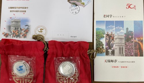 11月25日,原无锡师范69届初中毕业生派2位代表向我校捐赠了珍贵的老物件:“红卫兵证”、“红代会”锦旗、“锡师69届初中毕业50周年纪念银章”、“相聚50周年邮资纪念封 ”等。