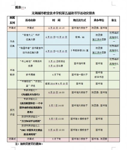 关于开展无锡城市职业技术学院第五届读书节活动的通知 | |